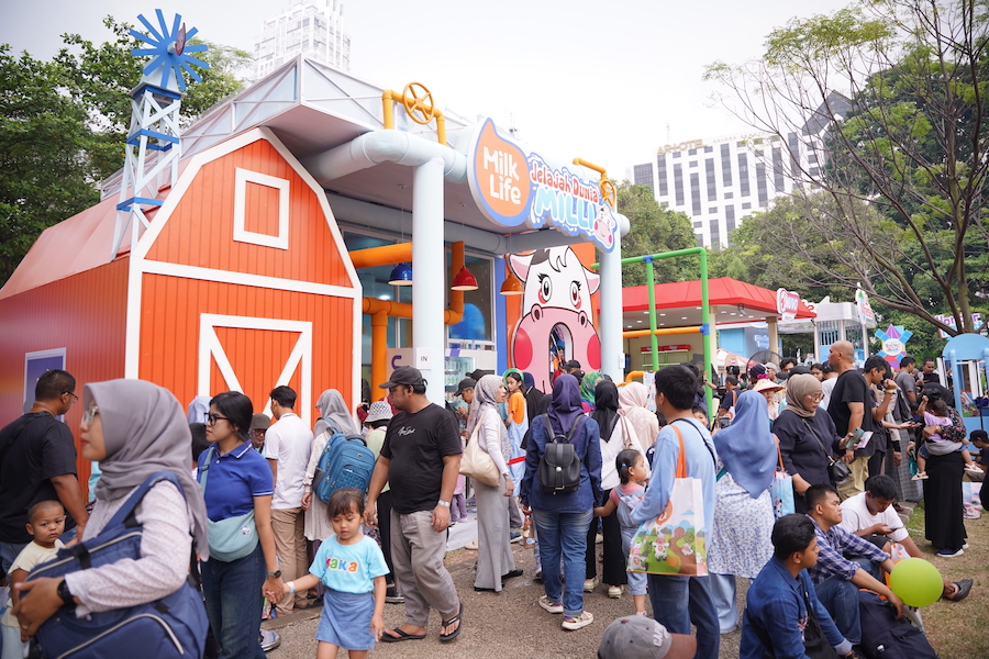 Interactive brand activation booth at Kumparan Mom – Children’s Day Festival, held on July 25-26, 2025, at Ex Taman Anggrek GBK Senayan. A two-day family-focused event featuring educational content about packaged milk origins with engaging activities for children and parents from 08:00-18:00 daily.